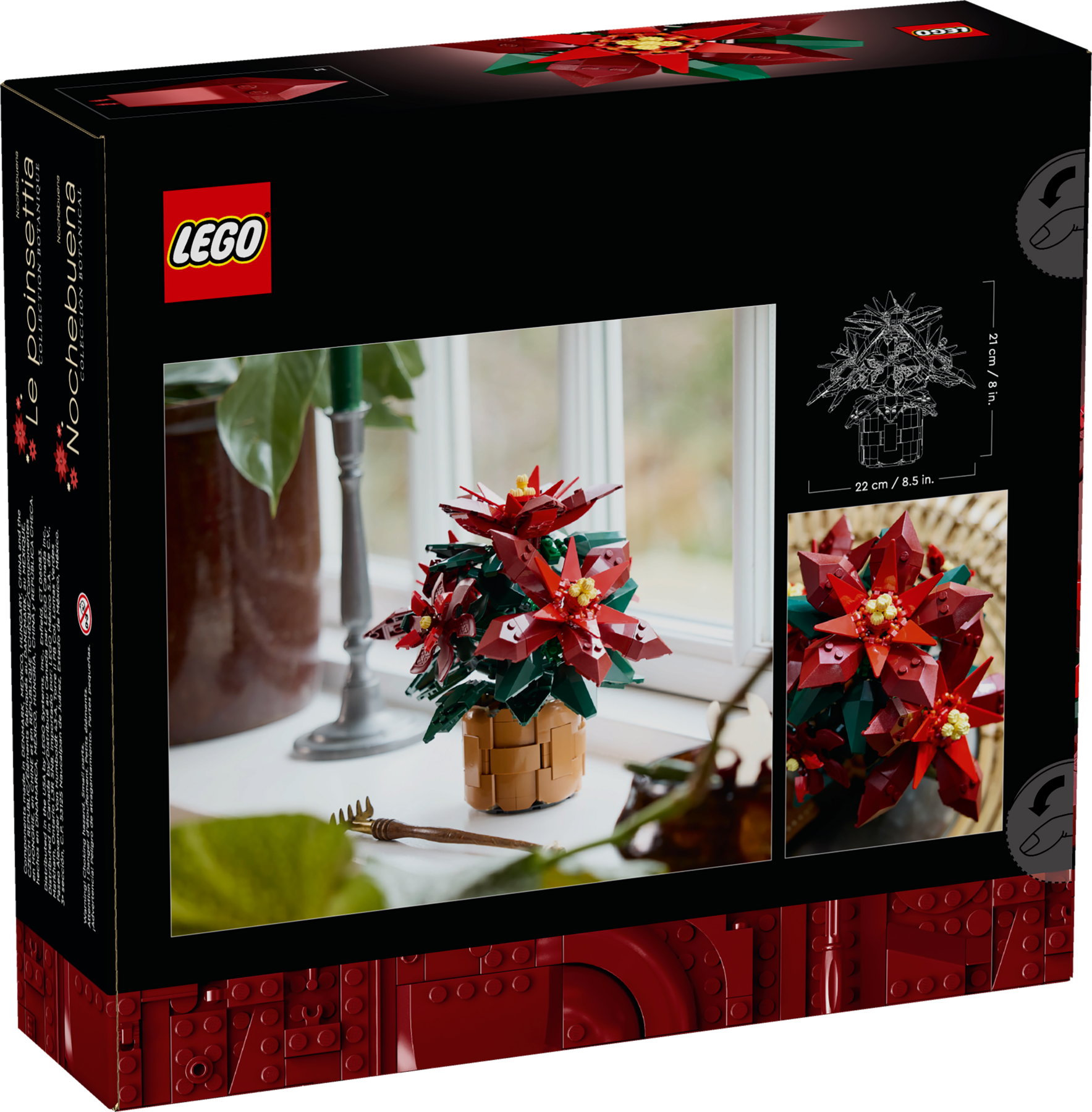 Bauprojekt für kreative Blumenliebhaber: In diesem Set findest du alles, was du brauchst, um eine detailgetreue LEGO® Nachbildung eines Weihnachtssterns sowie einen Blumentopf aus „Korbgeflecht“ zu erschaffen