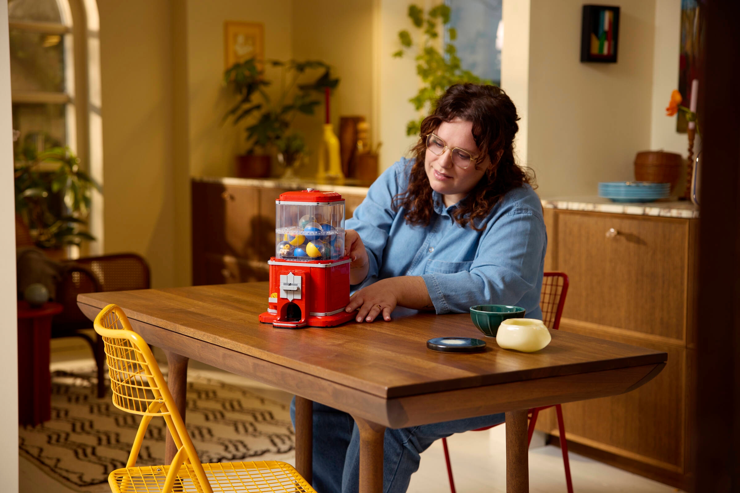 Der Kaugummiautomat mit Minifiguren (21358) ist ein Bauset für Erwachsene, das dich in einfachere Zeiten zurückversetzt und dich eine Deko in Retro-Optik erschaffen lässt. Dieses LEGO® Ideas Set ist ein kreatives Geschenk für Männer, Frauen und Designfans. Du kannst einen Kaugummiautomaten im klassischen Look und mit der typischen Funktionalität nachbilden. Baue das Modell, steck eine LEGO Münze in den Schlitz und dreh den Griff, um 1 von 16 Kapseln herauszulassen. Beim Drehen macht der Griff dieselben Knackgeräusche wie das Original.