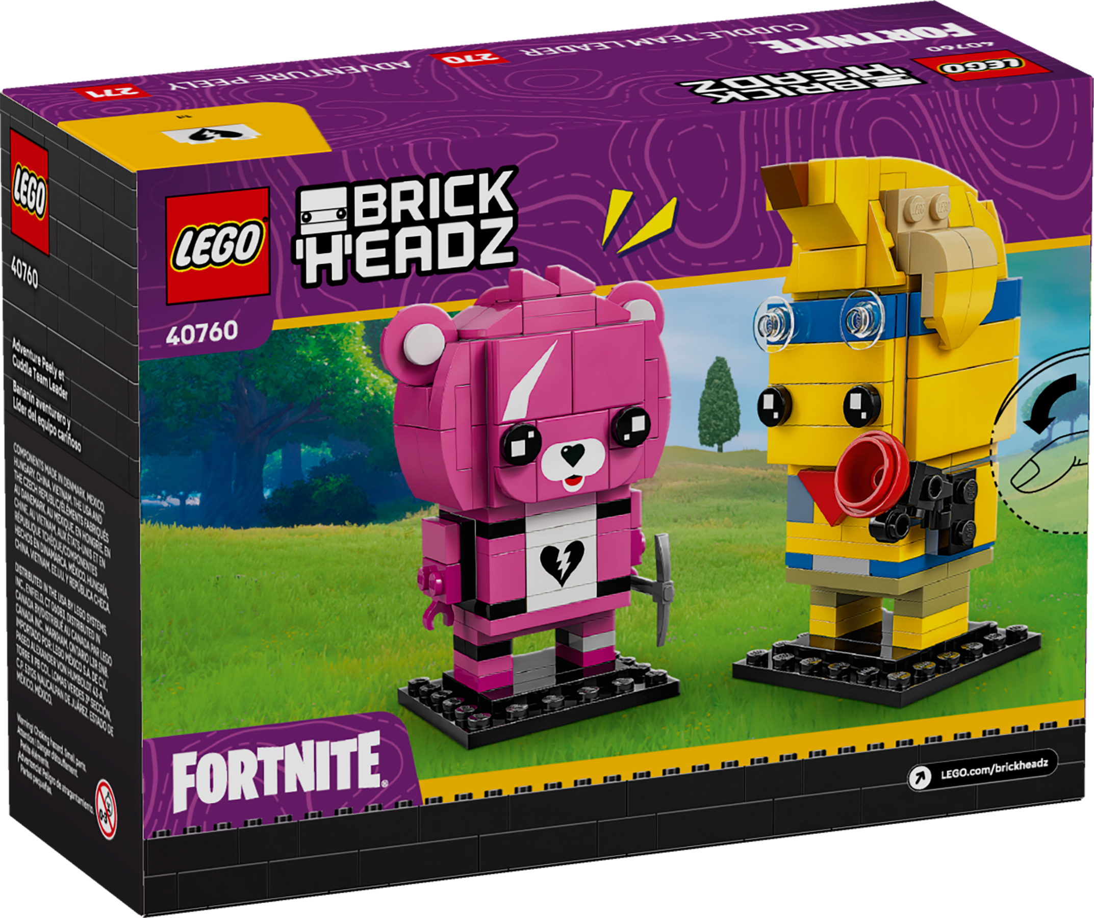 LEGO® Fortnite® BrickHeadz™ Abenteuer-Schali und Kuschelbeauftragte (40760) ist ein Bauset, mit dem Jungen und Mädchen ab 10 Jahren 2 legendäre Charaktere aus dem Videospiel erschaffen können. Gamer werden große Freude daran haben, die Figuren zu bauen und dann ihre coolen Details zu entdecken. Abenteuer-Schali hält einen Greifer, die Kuschelbeauftragte trägt dagegen eine Spitzhacke. Diese BrickHeadz Modelle sind nicht nur ein tolles Geschenk für junge Gamer und LEGO Fortnite Fans, sondern auch eine coole LEGO Zimmer-Deko. Das Set besteht aus 258 Teilen.
