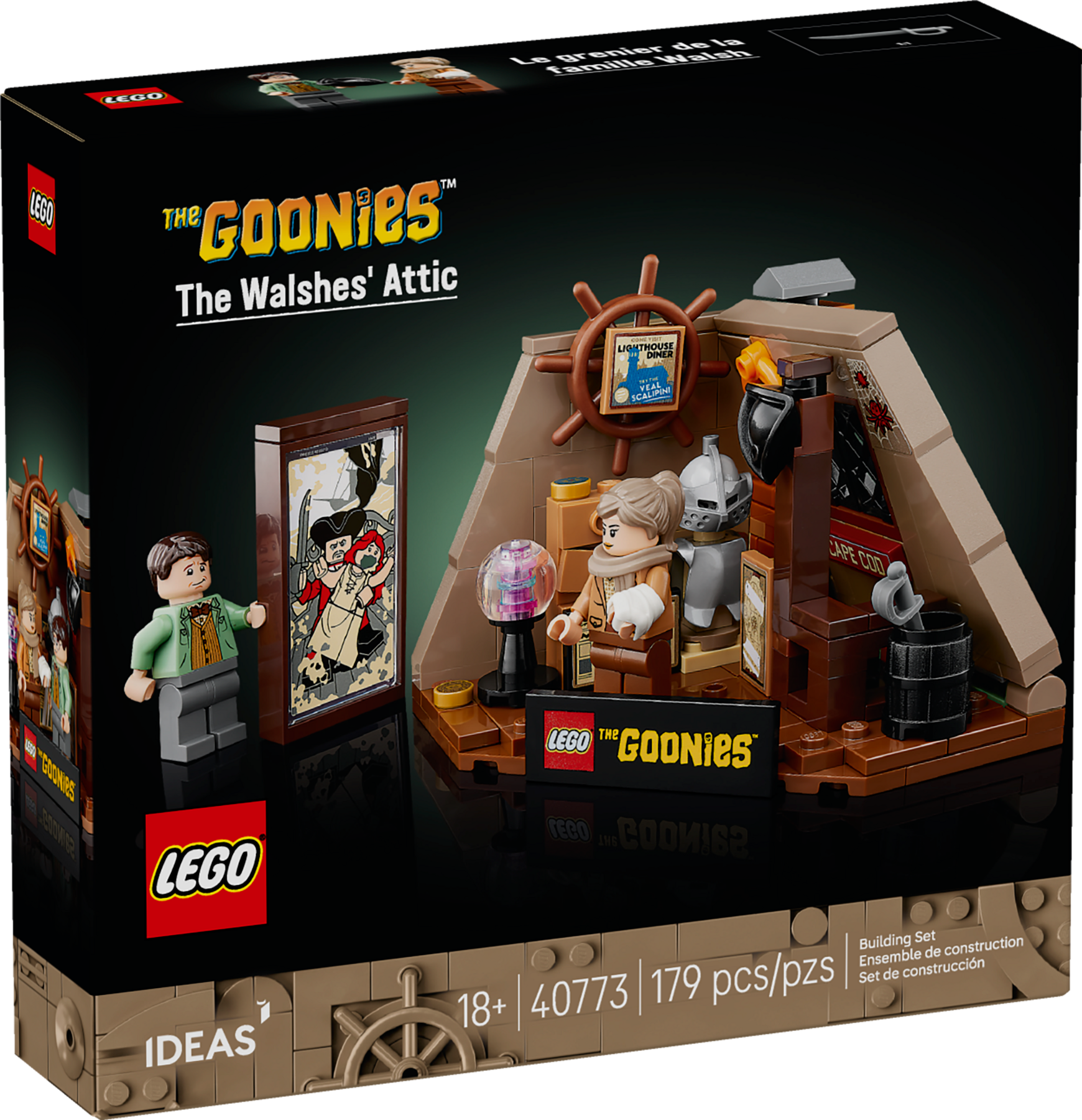 Bauset zum Film Die Goonies: Stell die unvergessliche Szene aus dem 80er-Jahre-Filmklassiker Die Goonies mit diesem Modell des Dachbodens der Familie Walsh aus LEGO® Steinen nach