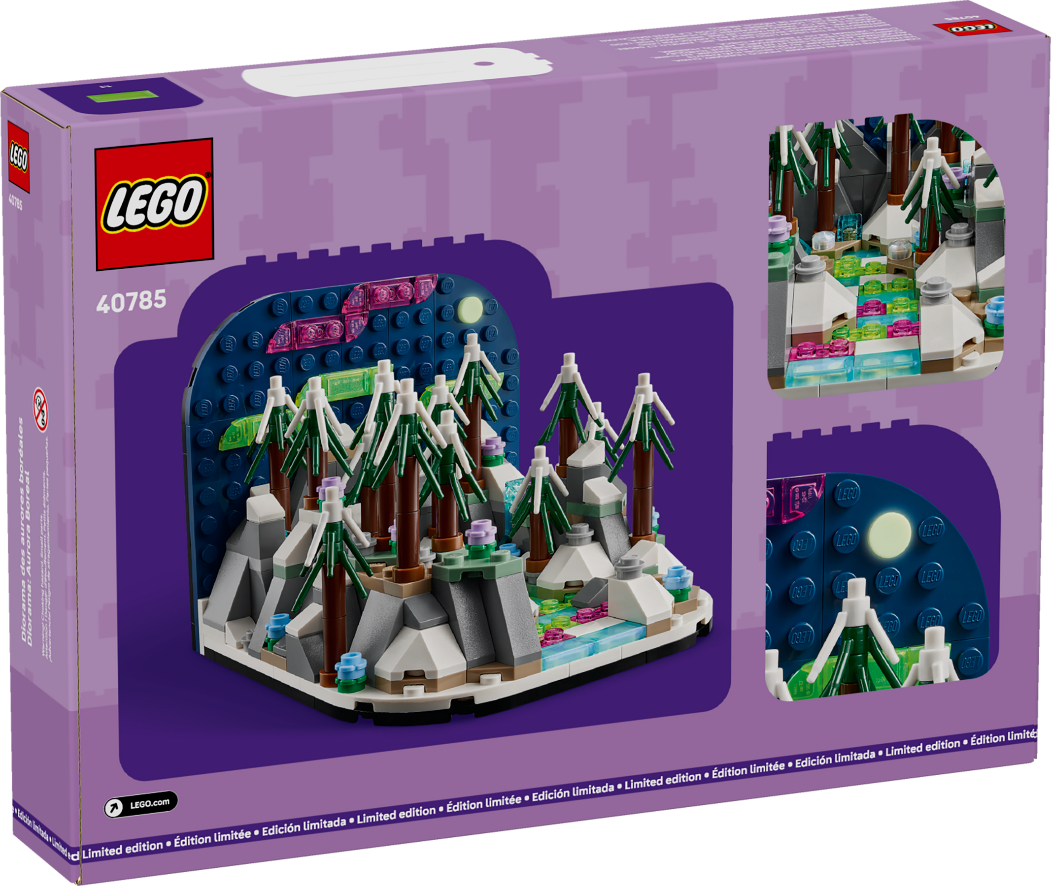 Das LEGO® Diorama Polarlichter (40785) ist das 4. Bauset aus einer LEGO Sammelserie, die den Wundern der Natur gewidmet ist. Das Modell stellt eine Landschaft im nördlichen Polarkreis mit einem Nachthimmel dar, an dem Polarlichter zu sehen sind. Baue die schneebedeckten Bäume und füge dann den im Dunkeln leuchtenden Mond und die bunten Steinchen hinzu, um die Polarlichter und ihre Spiegelungen nachzubilden. Das Set ist ein tolles Geschenk für Kinder ab 12 Jahren und alle Fans, die die Wunder der Natur lieben. Das Set besteht aus 332 Teilen.