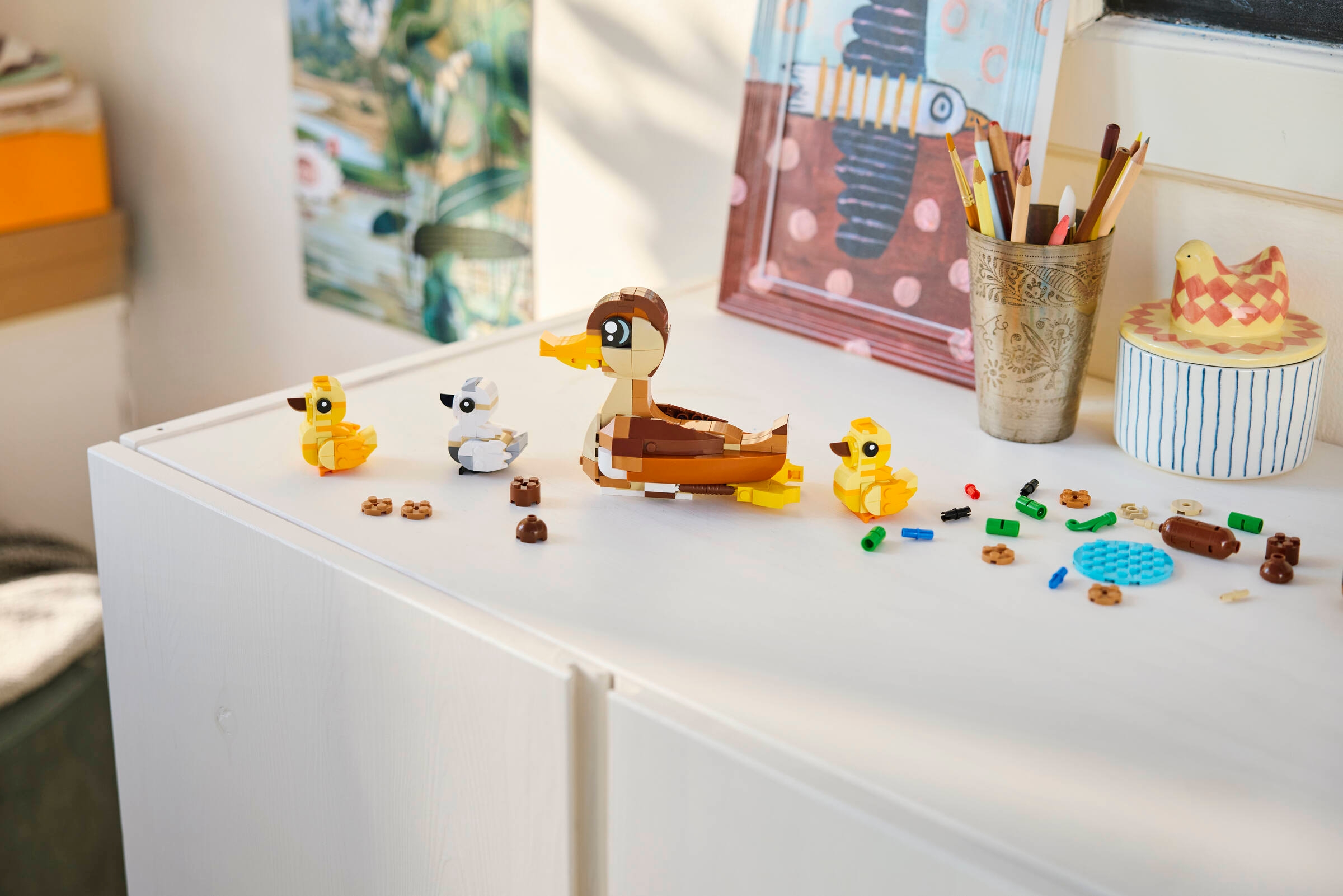 SPIELEN UND AUSSTELLEN: Nach dem Spielen kann die Entenmama mit ihren Entlein auf einem Schreibtisch, einem Regal oder einem Nachttisch ausgestellt werden