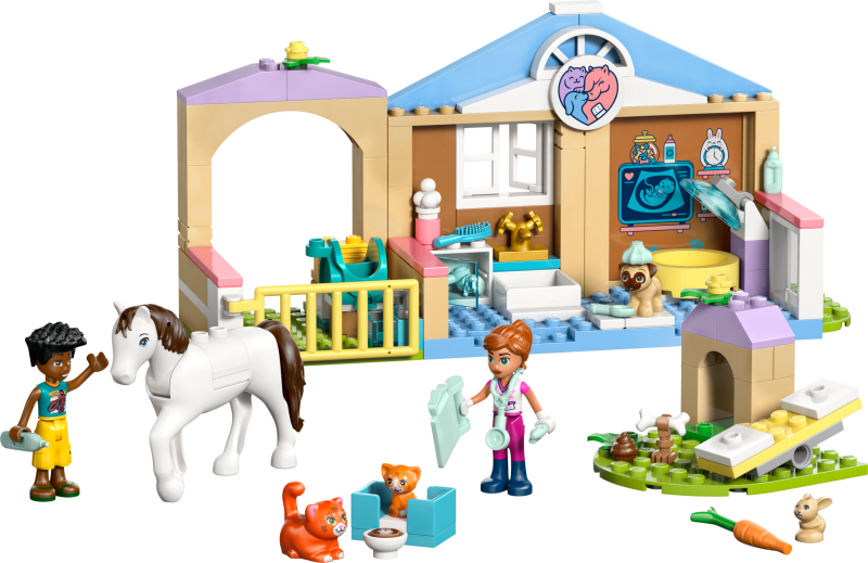 KINDER PFLEGEN TIERE: In der LEGO® Friends Tierklinik (42696) ist alles vorhanden, was Kinder brauchen, um Tiere zu versorgen. Es gibt einen Pferdestall, ein Untersuchungszimmer und einen Tierspielplatz