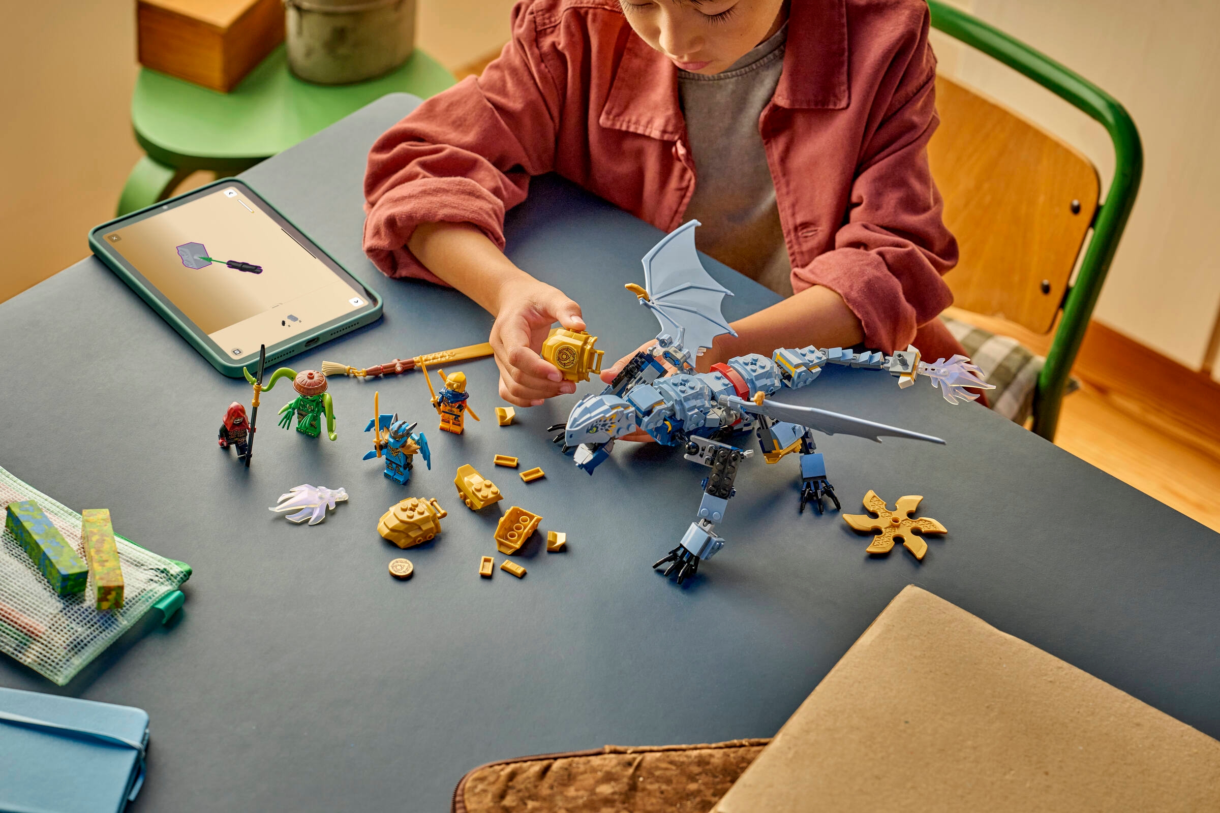 Die Spielsets aus dem LEGO NINJAGO Sortiment beinhalten Mechs, Drachen und Tempel, die Fans zu vielen Rollenspielen und Ninja-Abenteuern inspirieren. Die LEGO Builder App mit verständlichen digitalen Bauanleitungen lässt Kinder selbstbewusst bauen, ein 3D-Modell vergrößern und drehen und verfolgen, wie weit sie mit ihrem Modell schon sind Das Set besteht aus 347 Teilen.