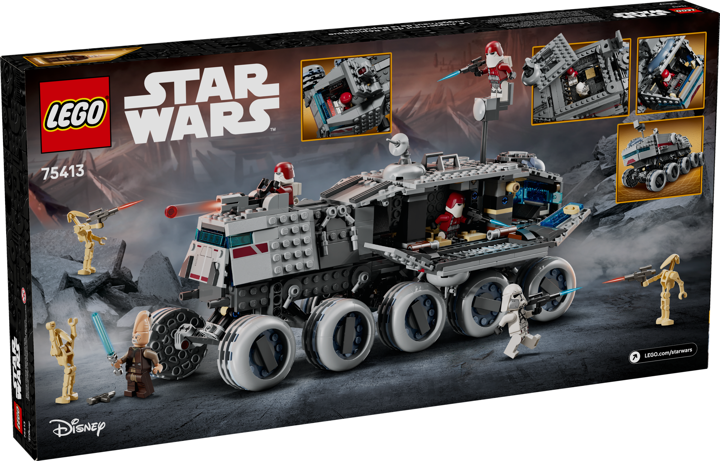 Die LEGO Builder App bietet ein noch besseres kreatives Erlebnis. In der App können Kinder beim Bauen eine digitale 3D-Ansicht des Star Wars Transporters vergrößern und drehen. Das Set besteht aus 813 Teilen.