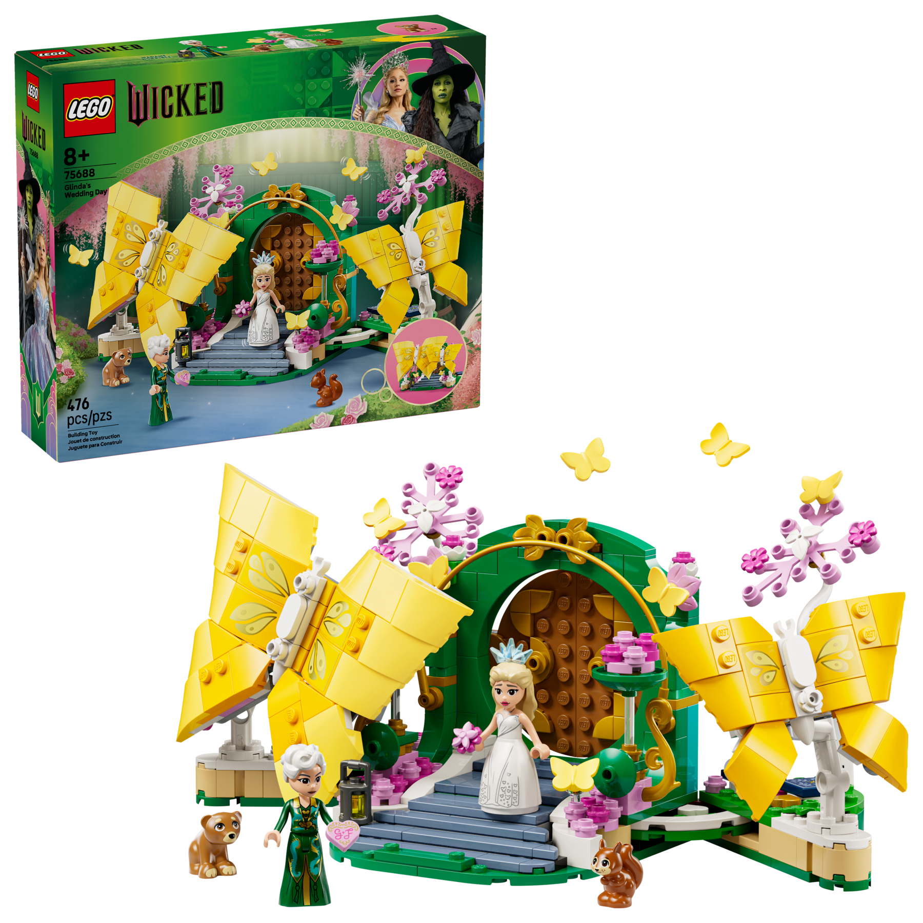LEGO® Wicked Glindas Hochzeitstag (75688) ist ein Spielset, das Kindern ab 8 Jahren kreativen Bauspaß und fantasievolle Geschichten bietet. Mädchen, Jungen und Fans von Wicked können dieses wunderschöne Modell bauen und die dramatische Szene aus Wicked: For Good nachspielen, in der sich Glinda auf ihre Hochzeit mit Fiyero vorbereitet.