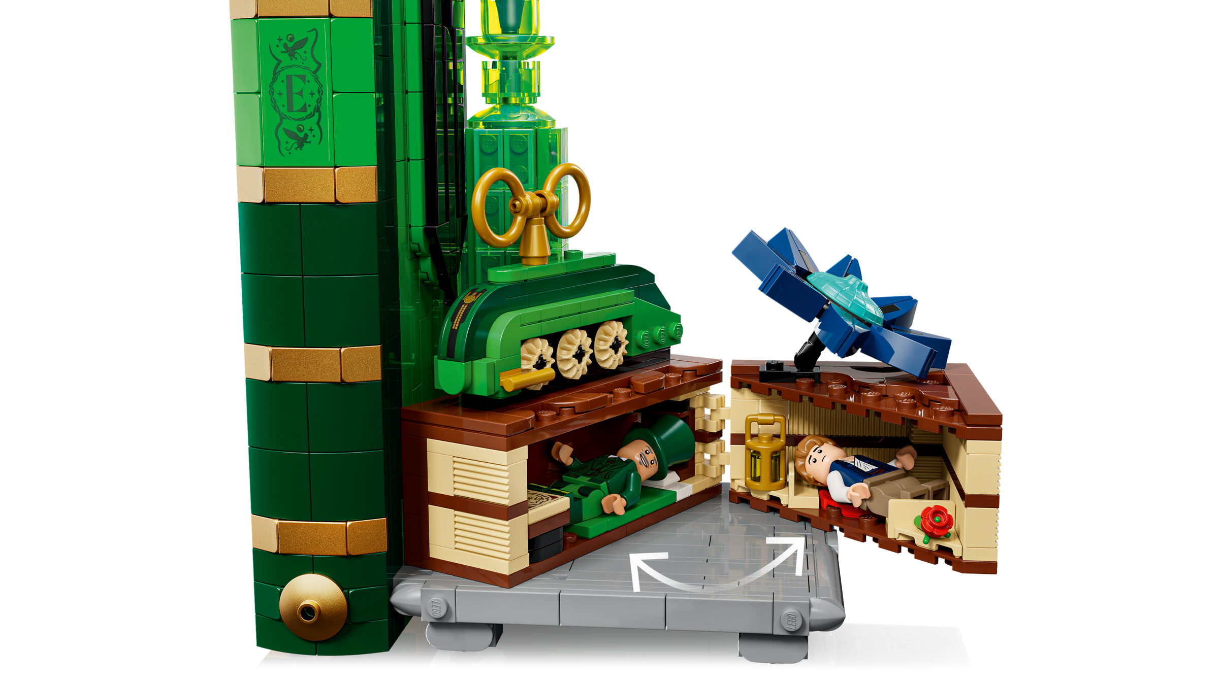• Spektakuläre Buchstützen: Baue Modelle von dem Grimmerie, Glindas Tagebuch und einem Schmetterling, dem Zug aus Emerald City sowie von Elphabas blauer Blume und grüner Elixierflasche und entdecke viele versteckte Easter Eggs