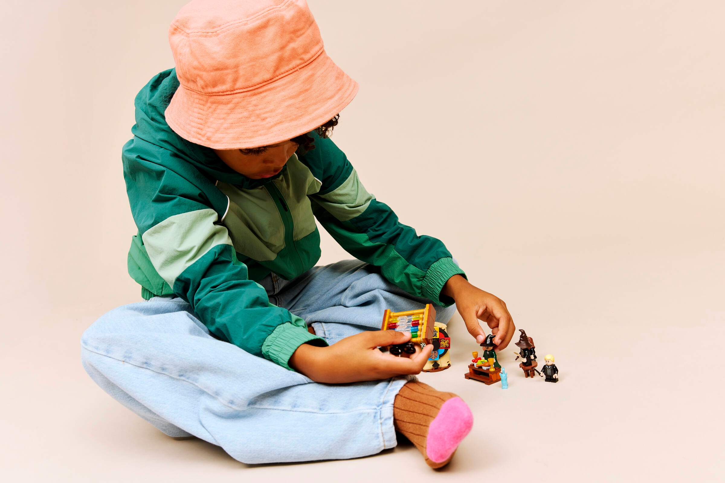 • 4 LEGO® HARRY POTTER™ MINIFIGUREN: Professor McGonagall™, Harry Potter, Hermine Granger™ und Draco Malfoy™ (jede mit eigenem Zauberstab) lassen Kinder die Zeremonie mit dem Sprechenden Hut nachspielen