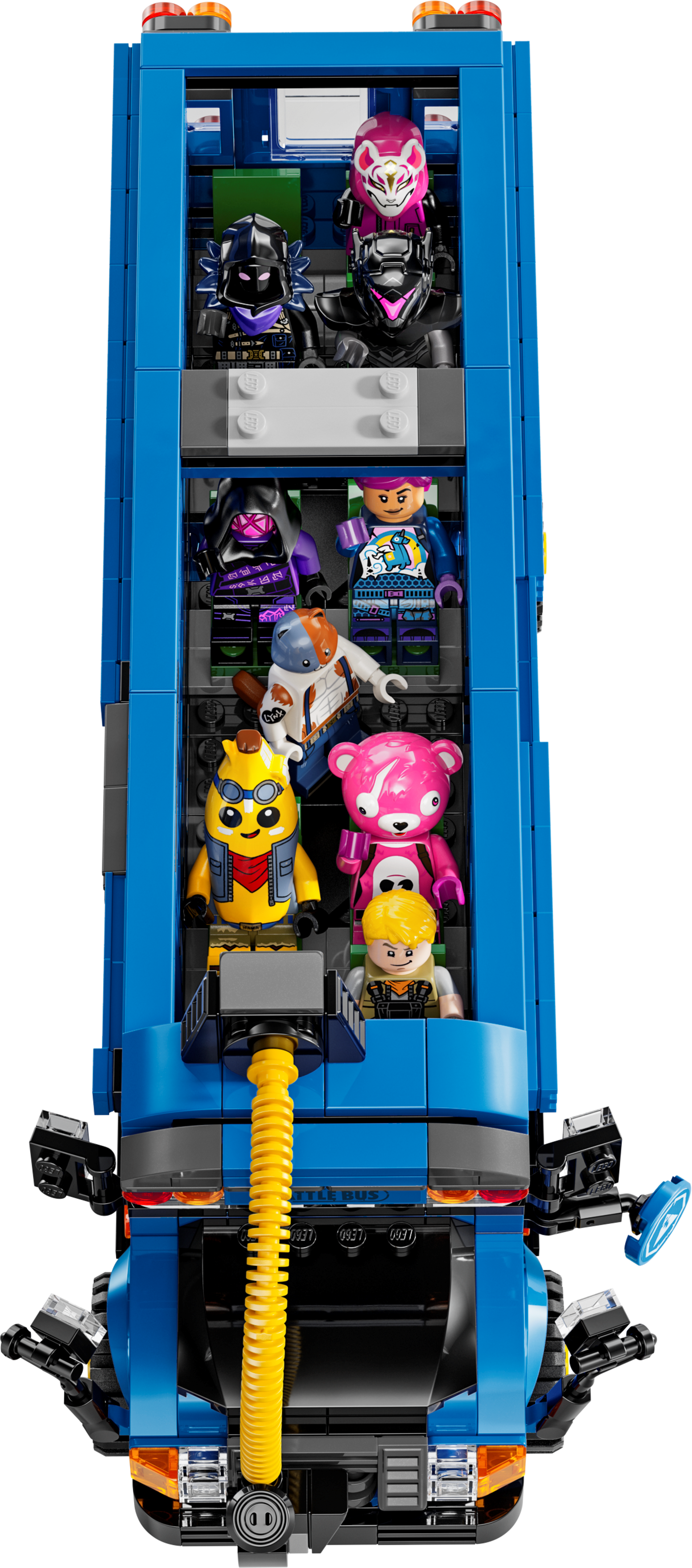 Wenn Fans den Bus bauen, werden sie in die faszinierende LEGO Fortnite Welt versetzt. Das Modell verfügt über drehbare Räder, ein abnehmbares Dach und den unverwechselbaren Heißluftballon. Doch das ist erst der Anfang! Im fertigen Bus können die Fans dann nicht nur legendäre Ausrüstung entdecken, unter anderem Schlürfsaft, einen Greifer, Spitzhacken und Schubsaft, sondern auch 9 Minifiguren in legendären Fortnite Outfits. Die Minifiguren kann man für kreative Rollenspiele in den Bus setzen, um das Abenteuer zum Leben zu erwecken.